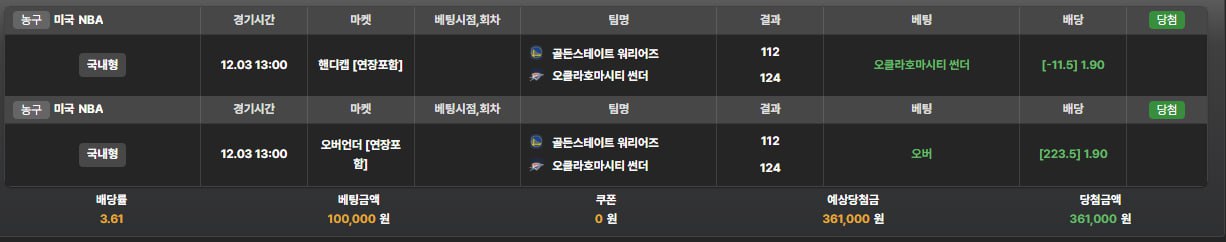종목별 팀순위