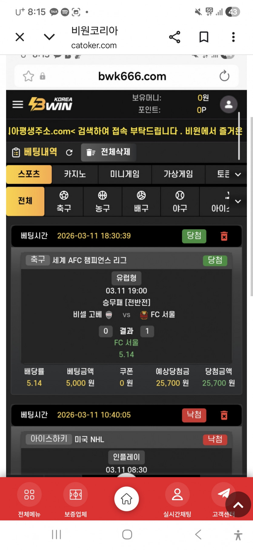 종목별 팀순위