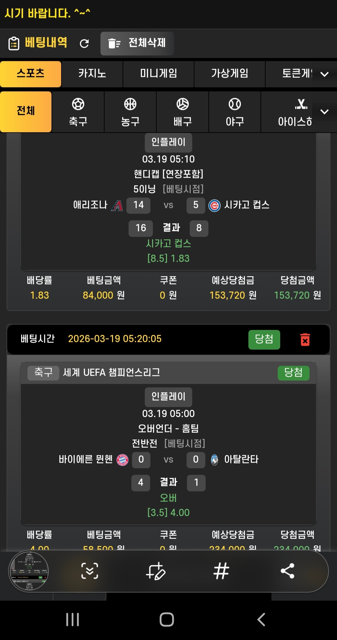 종목별 팀순위