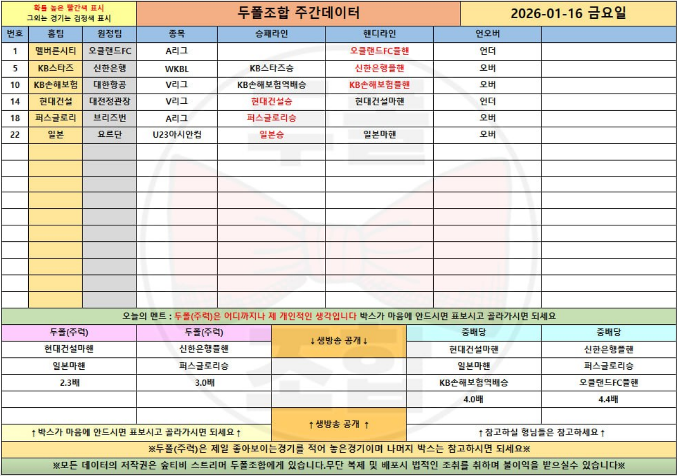 1월 16일 오후경기 가봅니다