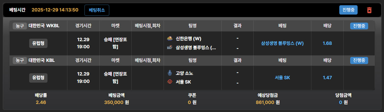 종목별 팀순위