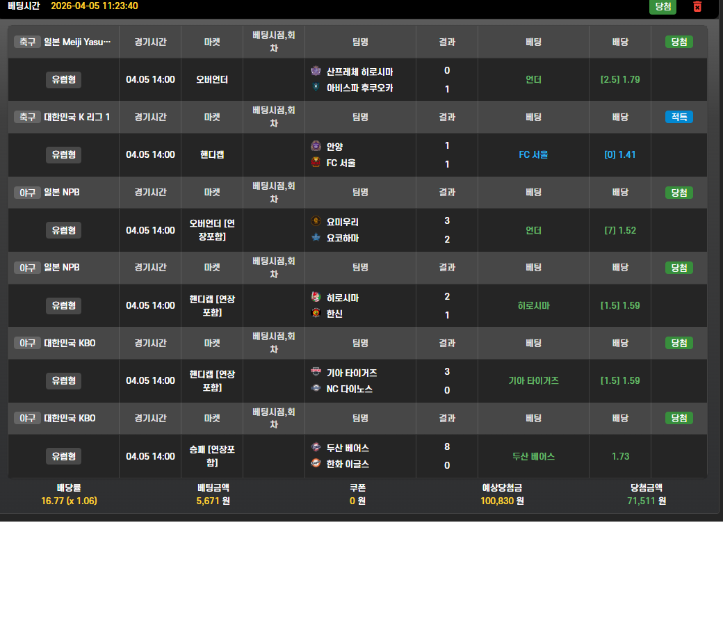 종목별 팀순위